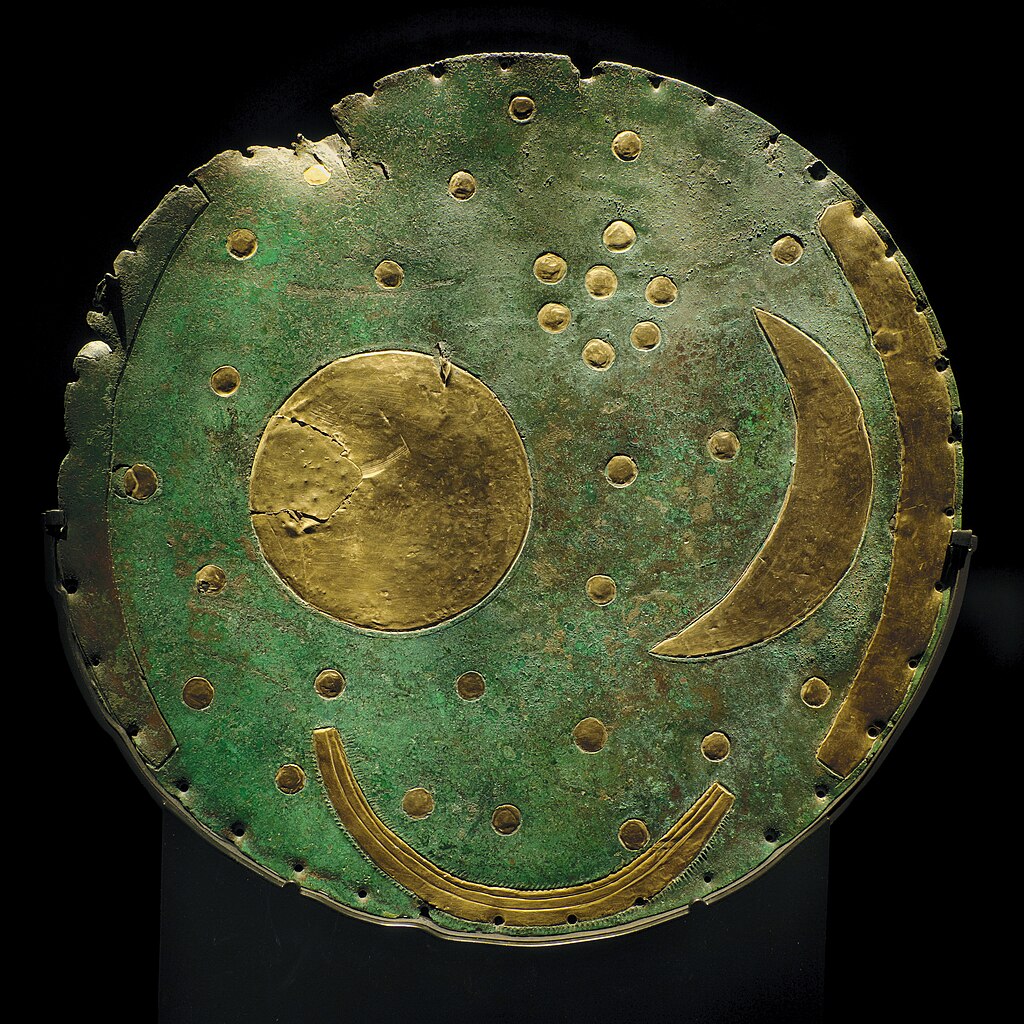 Die Himmelsscheibe von Nebra ist allerdings bereits ca. 3.600 Jahre alt und auch sie ist ein Artefakt, das die wesentlichen Geistesströmungen der Menschheit auf lediglich 32 cm Durchmesser abbildet. Sie ist eine faszinierende Symbollandschaft mit allen Anzeichen der Astronomie, Religion und Kulturgeschichte. Bildquelle: Wikipedia (CC0 1.0)