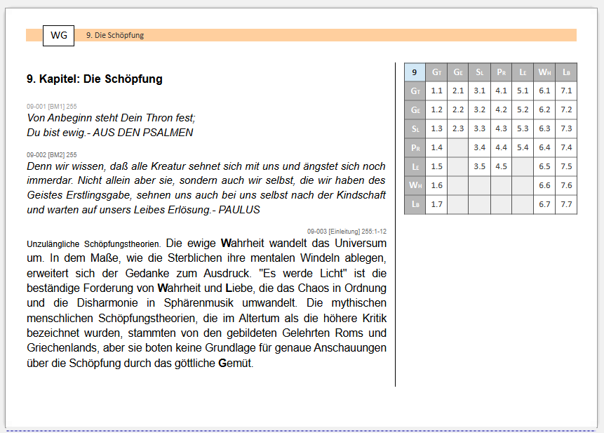 Die textimmanenten Kategorien wurden visualisiert (rechte Spalte) und mit interaktiven Hyperlinks versehen. Dadurch wird die vertikale und horizontale Erforschung der Diagonalmatrix möglich. Die gesamte Edition enthält Tausende von Querverweisen.